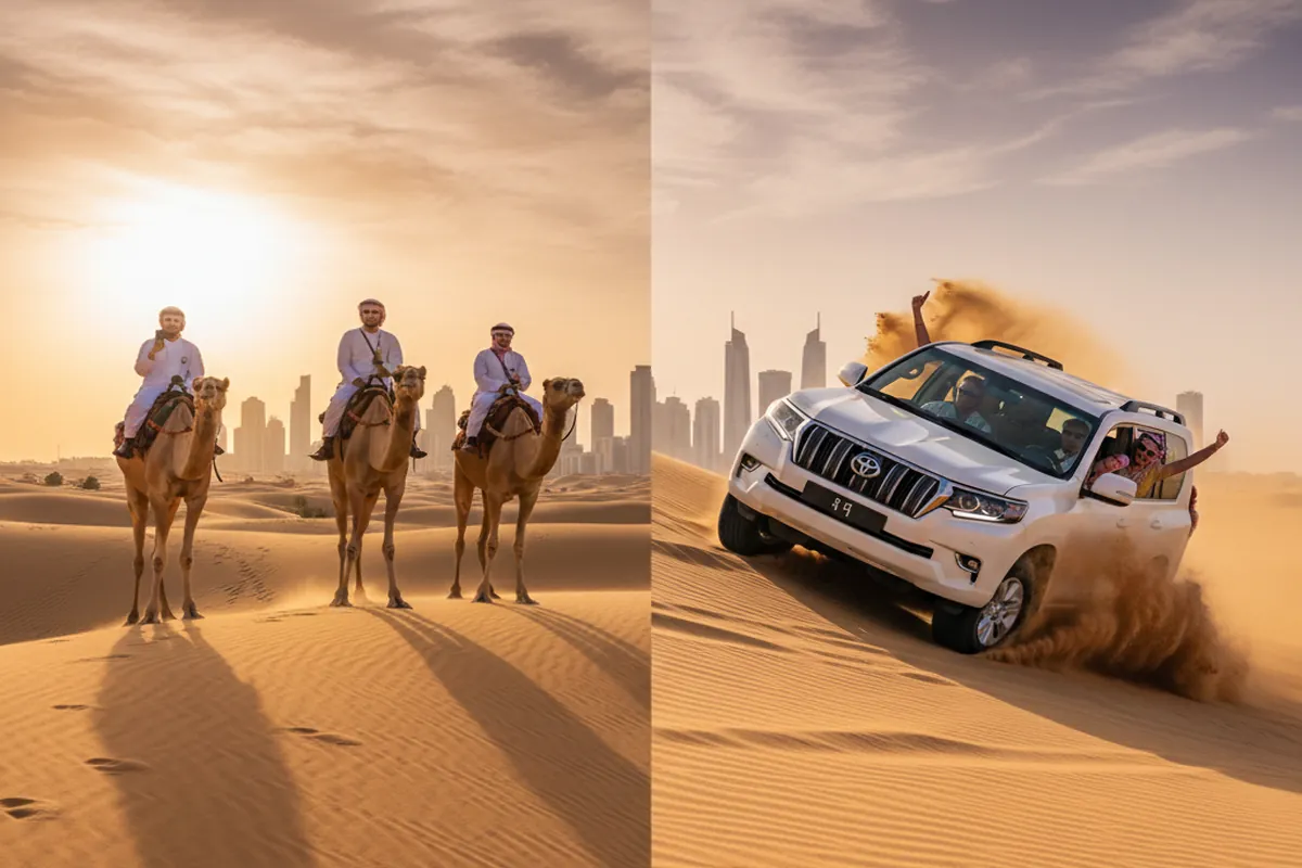 Experience the best of both worlds with our Camel Ride and Desert Safari Combo — a perfect mix of tradition and thrill. Begin your adventure with a peaceful camel trek across the golden dunes, soaking in the beauty of the desert the old-fashioned way. Then switch gears for an adrenaline-packed safari with dune bashing, sandboarding, and a BBQ dinner at a traditional camp. It’s the ideal choice for travelers who want to enjoy culture, excitement, and desert charm all in one unforgettable package.