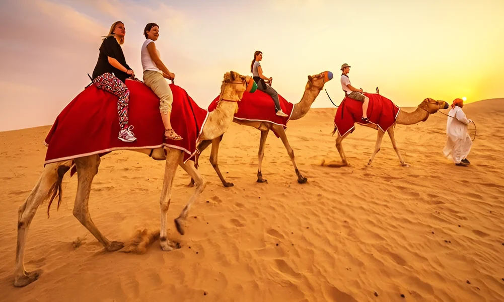 Arrival at the Desert Camp: Upon arrival at the desert camp, you will be greeted by the sight of endless sand dunes and the calm ambiance of the desert. You’ll have some time to relax and enjoy traditional Arabian hospitality, with refreshing tea and sweet dates. This is the perfect time to soak in the serene surroundings before your camel ride begins.